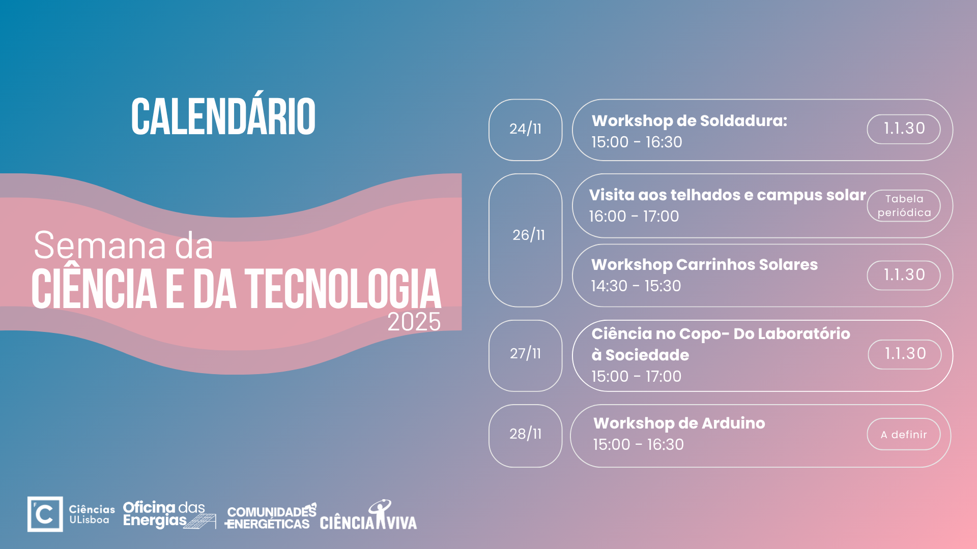 Pelo segundo ano consecutivo a Oficina das Energias em parceria com a Ciência Viva, organizou vários workshops e atividades para todos participarem e aprenderem mais sobre ciência ao longo desta semana!
